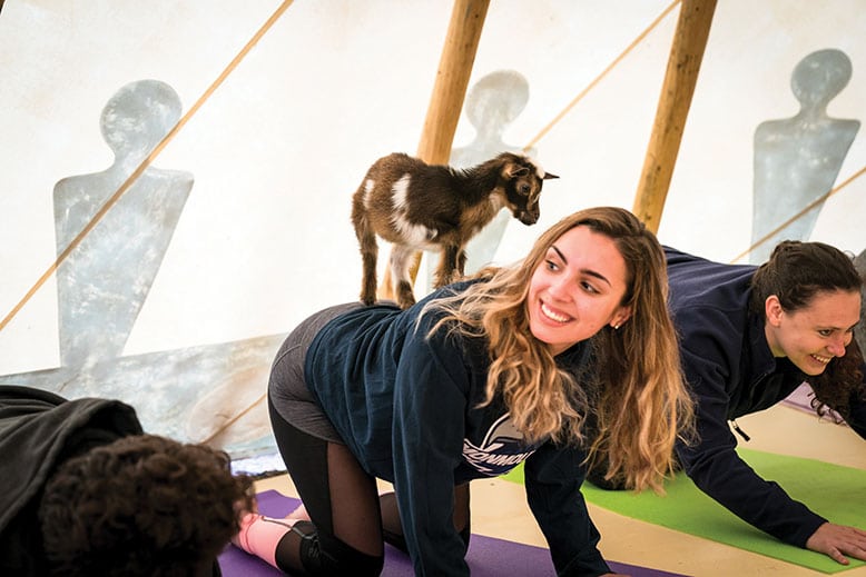 The idea behind what is goat yoga is to create a warm and intimate setting that invites people to spend time together in a comfy environment.